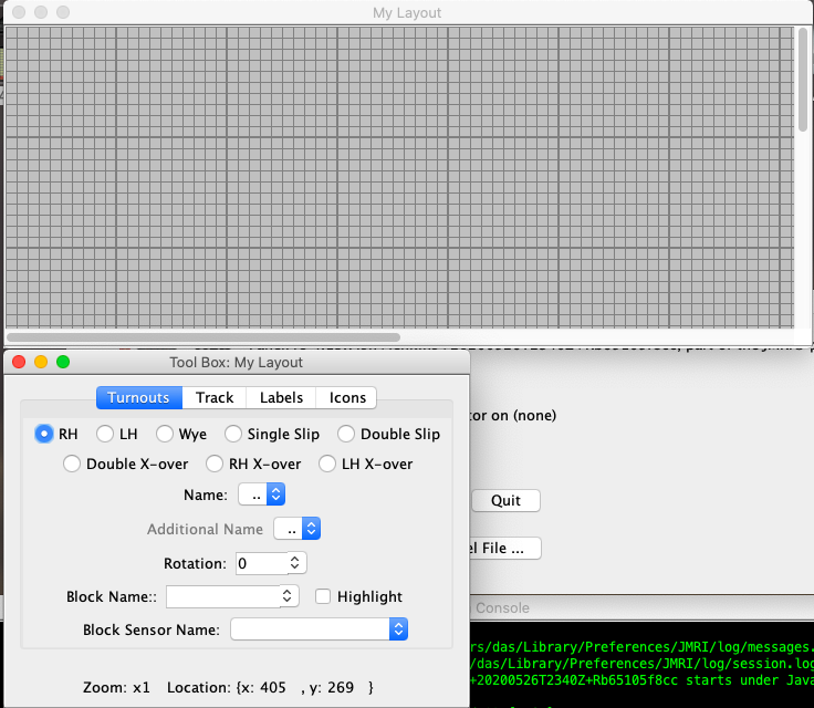 The basic panel is now done. It has turnouts, occupancy sensors and blocks. It can simulate sending turnout commands to the layout and respond to simulated occupancy changes. It includes the ability to initialize the layout after panel loading using Routes, LRoutes and Logix.
