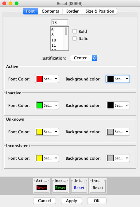 Set the Active and Inactive Font and Background colors.