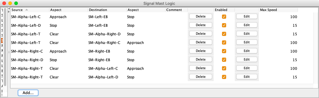 Signal mast logic is maintained at PanelPro Tools ⇒ Tables ⇒ Signals ⇒ Signal Mast Logic.