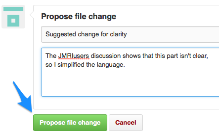 this is a good change, and click the "Propose file change" button. This saves your edits to