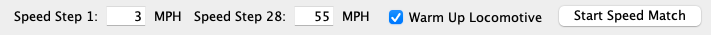 At the bottom of the right side is a "Speed Matching" section. This configures the Vstart (3) and Vhigh (4) CVs to match the your desired speeds at speed step 1 and 28. The Vmid CV is set to half way between these to attempt to set a straight-line speed curve.