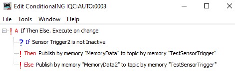 An example of a simple LogixNG conditional that will publish an MQTT message whenever a sensor (Trigger2) is