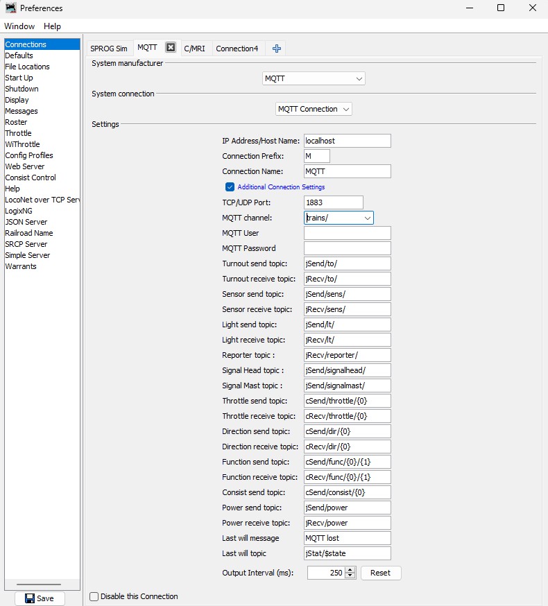 Now enter "localhost" as the Host Name on the MQTT JMRI Connection Preferences page. You are now connected!