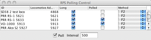 - Check the box under "Poll" for each Locomotive in which an RPS Transmitter is