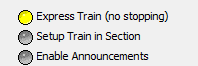 The first step is to register a train in a siding or at a stop. If you are simulating the system to see whether it will work before running trains you may press the bottom left hand small button which will make the section occupied. Drive a train to the required stop, and press Setup Train in Siding.