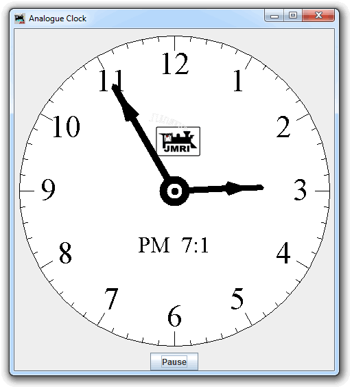 When a clock is running, JMRI creates an internal sensor and a memory variable that you can use to control and access the clock. The ISCLOCKRUNNING sensor controls whether the clock is running (ACTIVE) or stopped (INACTIVE). The IMCURRENTTIME memory contains the current fast-clock time, and can be easily accessed from Logix and scripts.
