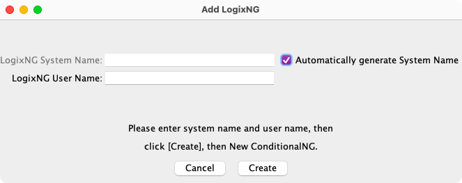 normally followed by numbers. For details about the LogixNG system name, see Add a LogixNG. The system name cannot be changed.