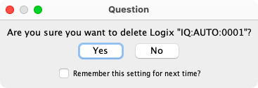 The Delete action deletes the current LogixNG, all of its ConditionalNGs