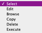 The dropdown combo box has five actions that can be applied to the current LogixNG row.