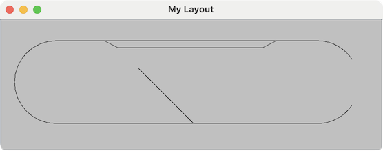 8. Turnout positions and anchor point positions may be adjusted to make the track diagram look nice by holding down the meta key (check the help bar to see which key is the meta key), and dragging each anchor point or turnout. To adjust the position of a turnout, drag the center point of the turnout with the meta key pressed.