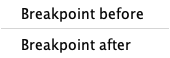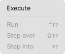If the item has children, you can jump over the children by instead selecting the menu item Debug ⇒ Step over. Step over means that the debugger will process the children items without stopping before and after each one. When the children items have been processed, the debugger will stop after the parent item. Note: If a child has a breakpoint, processing will stop at that child even though step over is active.