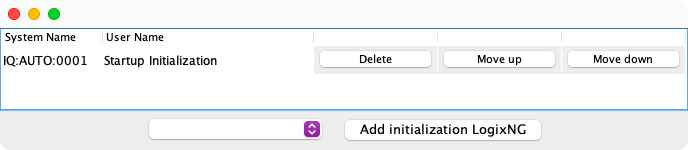 Select a LogixNG from the combo box and press Add Initialization LogixNG.