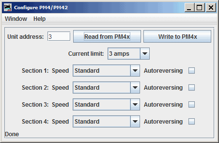 The JMRI PM4x programming tool lets you configure the internal options of a PM4 or PM42 directly from your computer.