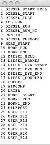 After making changes, you can click "Save" at the top of the editor window to save the file with the original name, or (better) under another name. You can then use the Sound Downloader tool to load the modified file into a Digitrax decoder via a PR2 or PR3 interface.