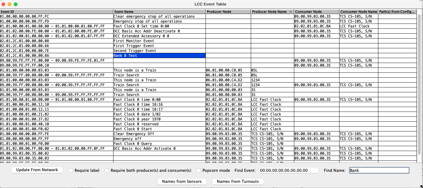 - Display the Events used on your OpenLCB network along with all of their related